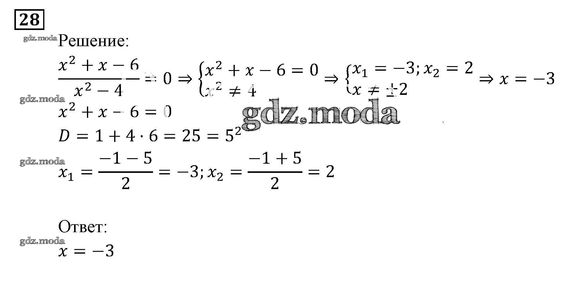 ОТВЕТ на задание № 28 Задачник по Алгебре 9 класс Мордкович