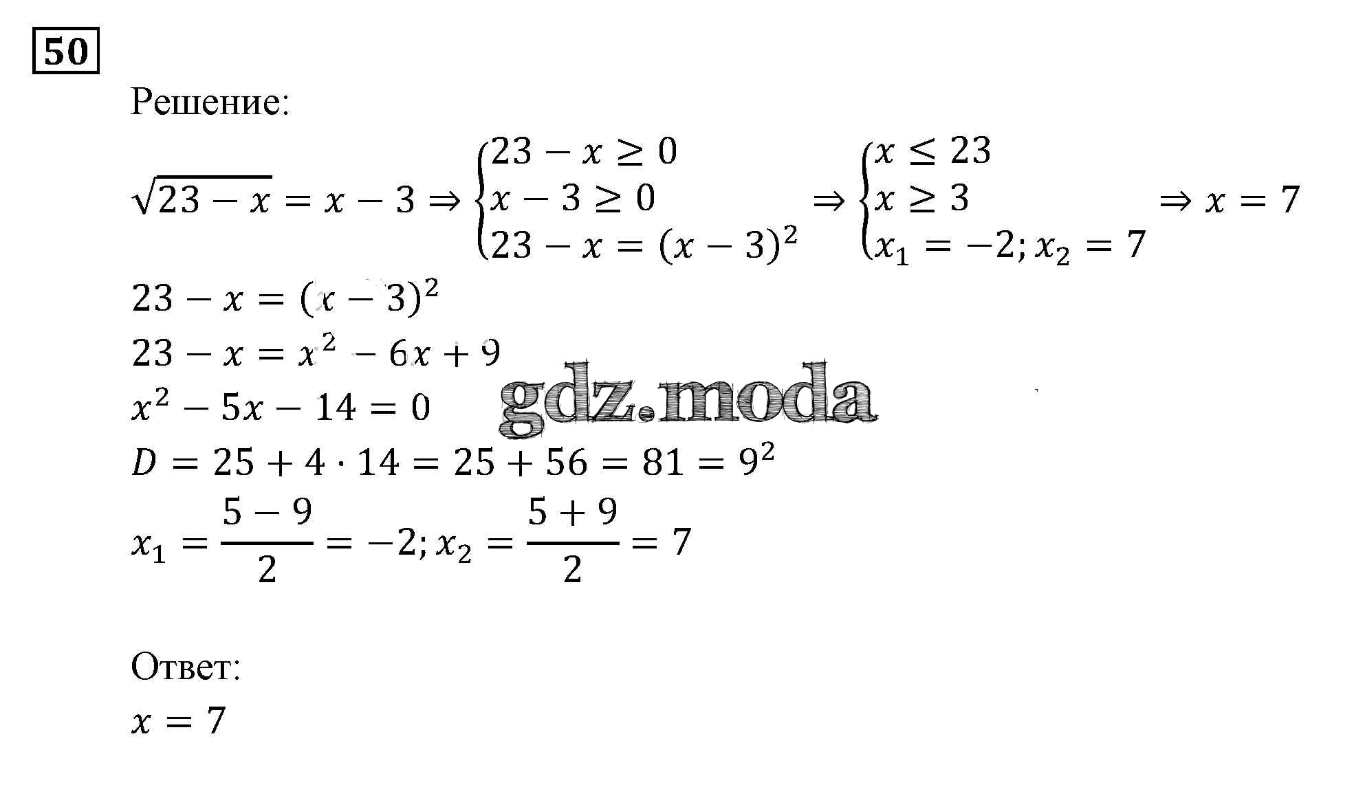 ОТВЕТ на задание № 50 Задачник по Алгебре 9 класс Мордкович