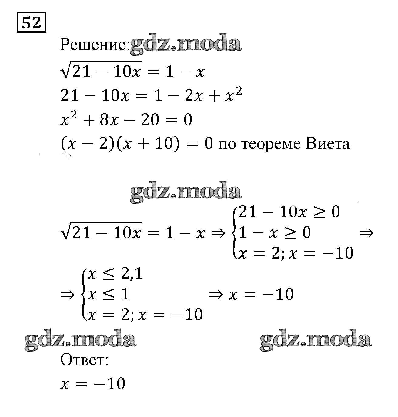ГДЗ решение к заданию № 52 Алгебра 9 класс Задачник Мордкович А.Г. (часть 2) Мнемозина 2010 Часть 2 ФГОС бесплатно на гдз.мода!