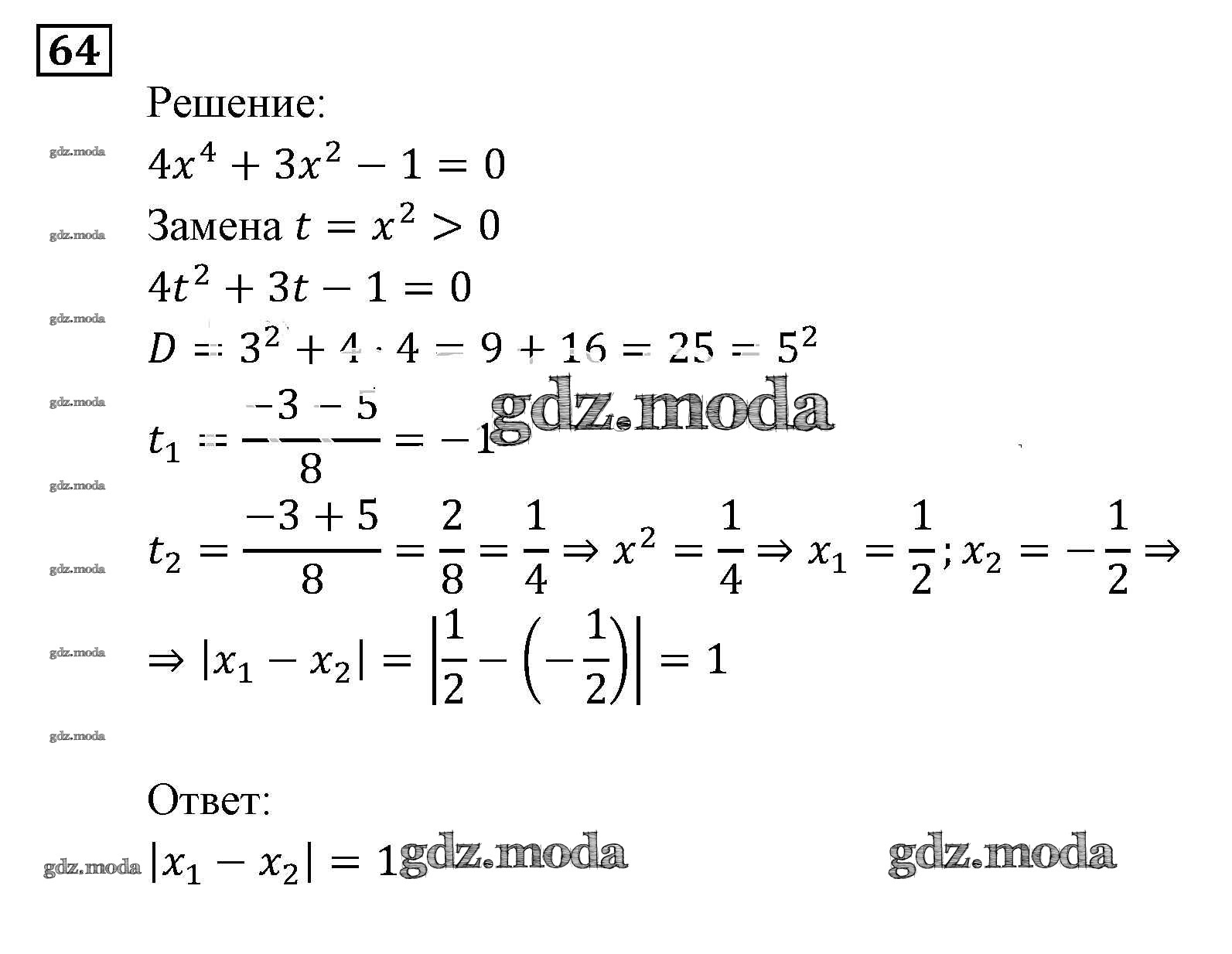 ОТВЕТ на задание № 64 Задачник по Алгебре 9 класс Мордкович