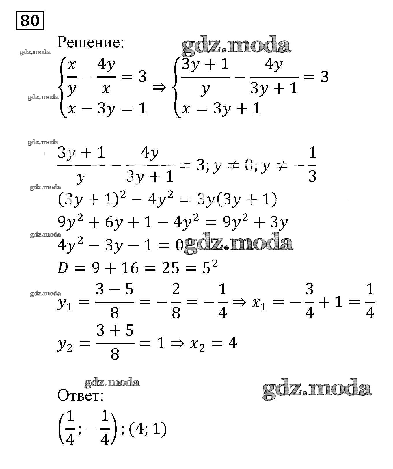 ОТВЕТ на задание № 80 Задачник по Алгебре 9 класс Мордкович