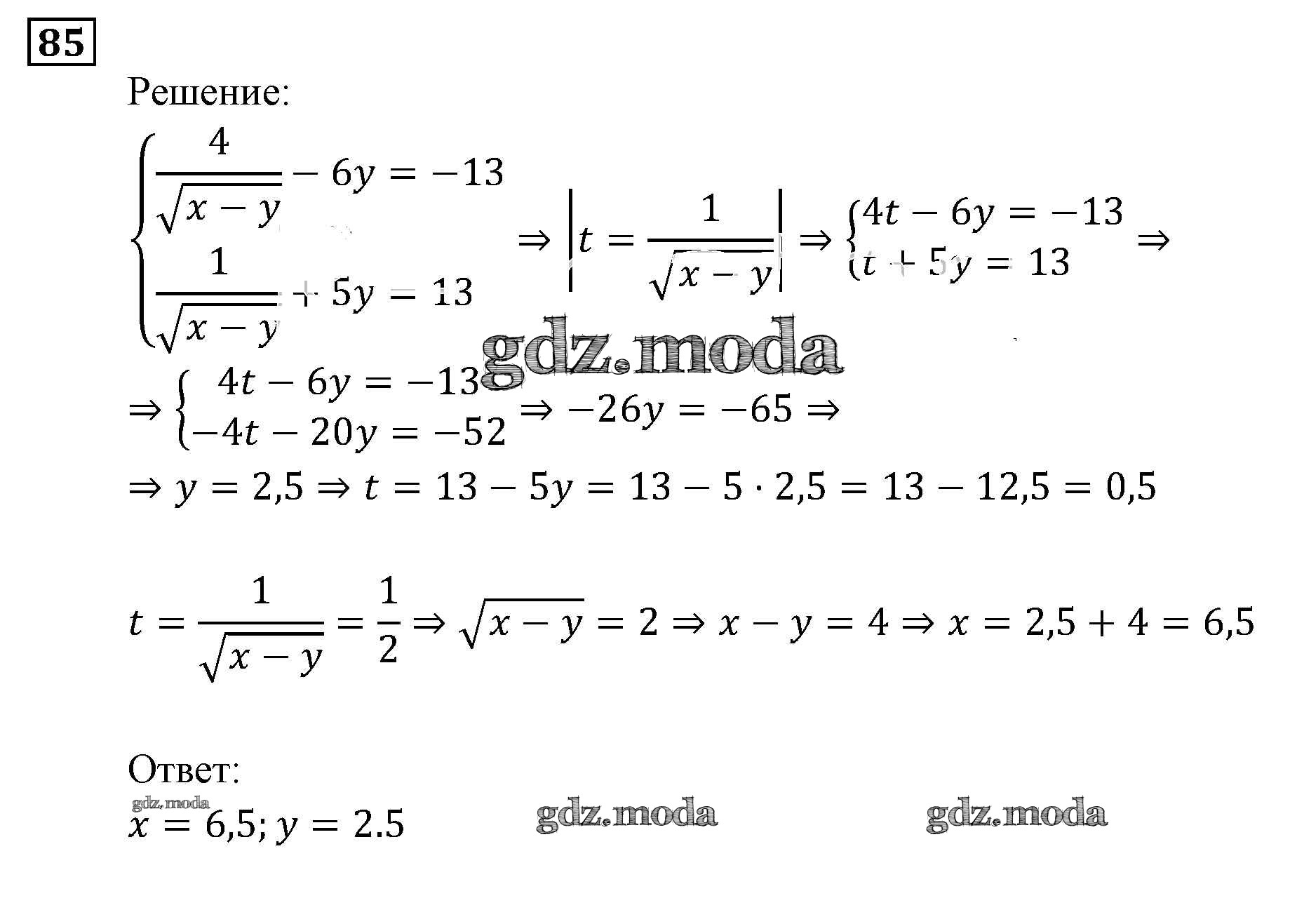 ОТВЕТ на задание № 85 Задачник по Алгебре 9 класс Мордкович