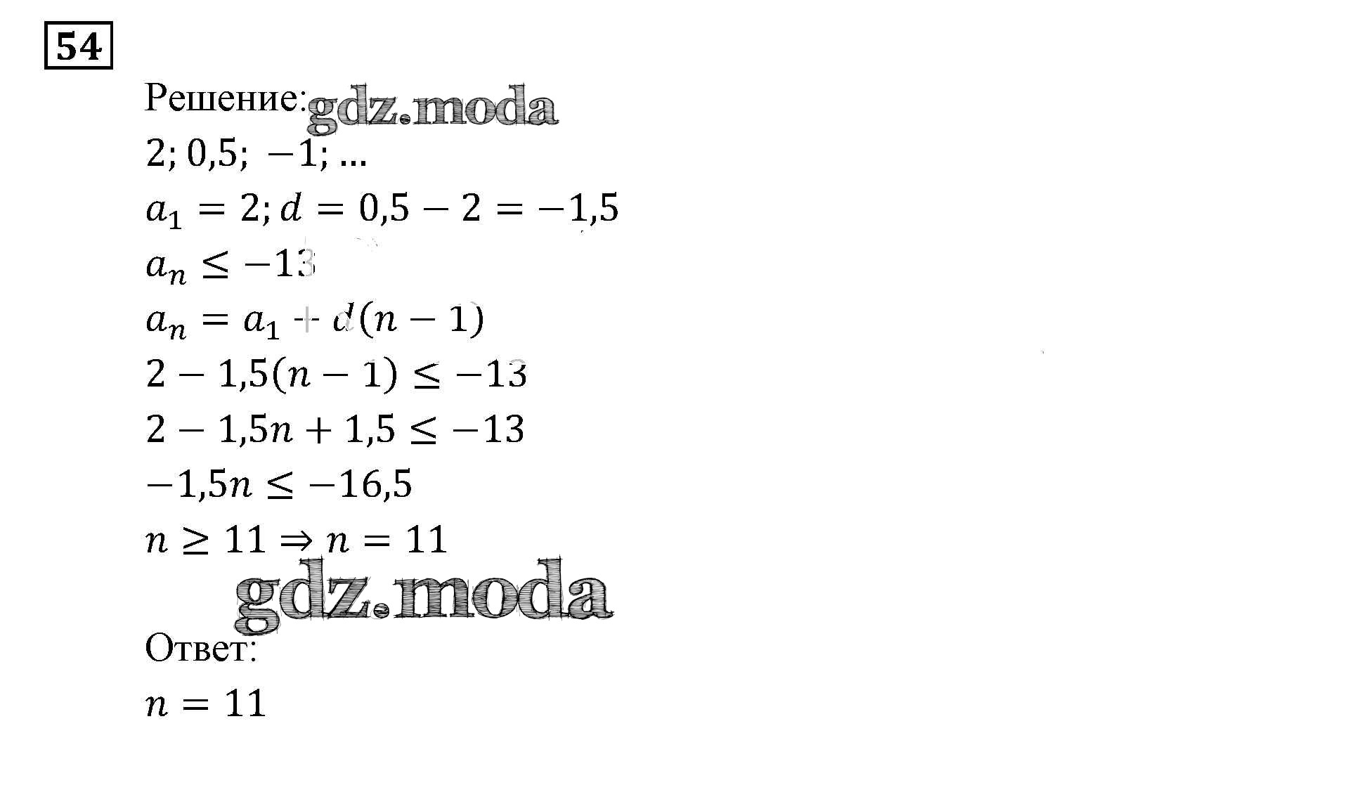 ОТВЕТ на задание № 54 Задачник по Алгебре 9 класс Мордкович