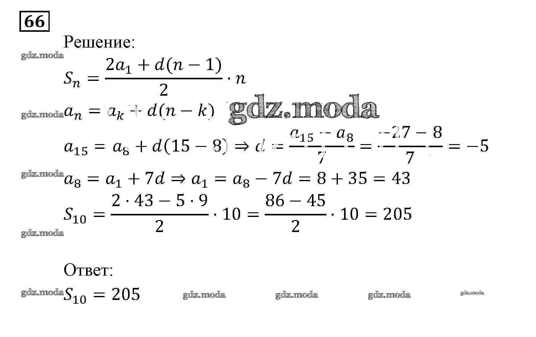 ГДЗ решение к заданию № 66 Алгебра 9 класс Задачник Мордкович А.Г. (часть 2) Мнемозина 2010 Часть 2 ФГОС бесплатно на гдз.мода!