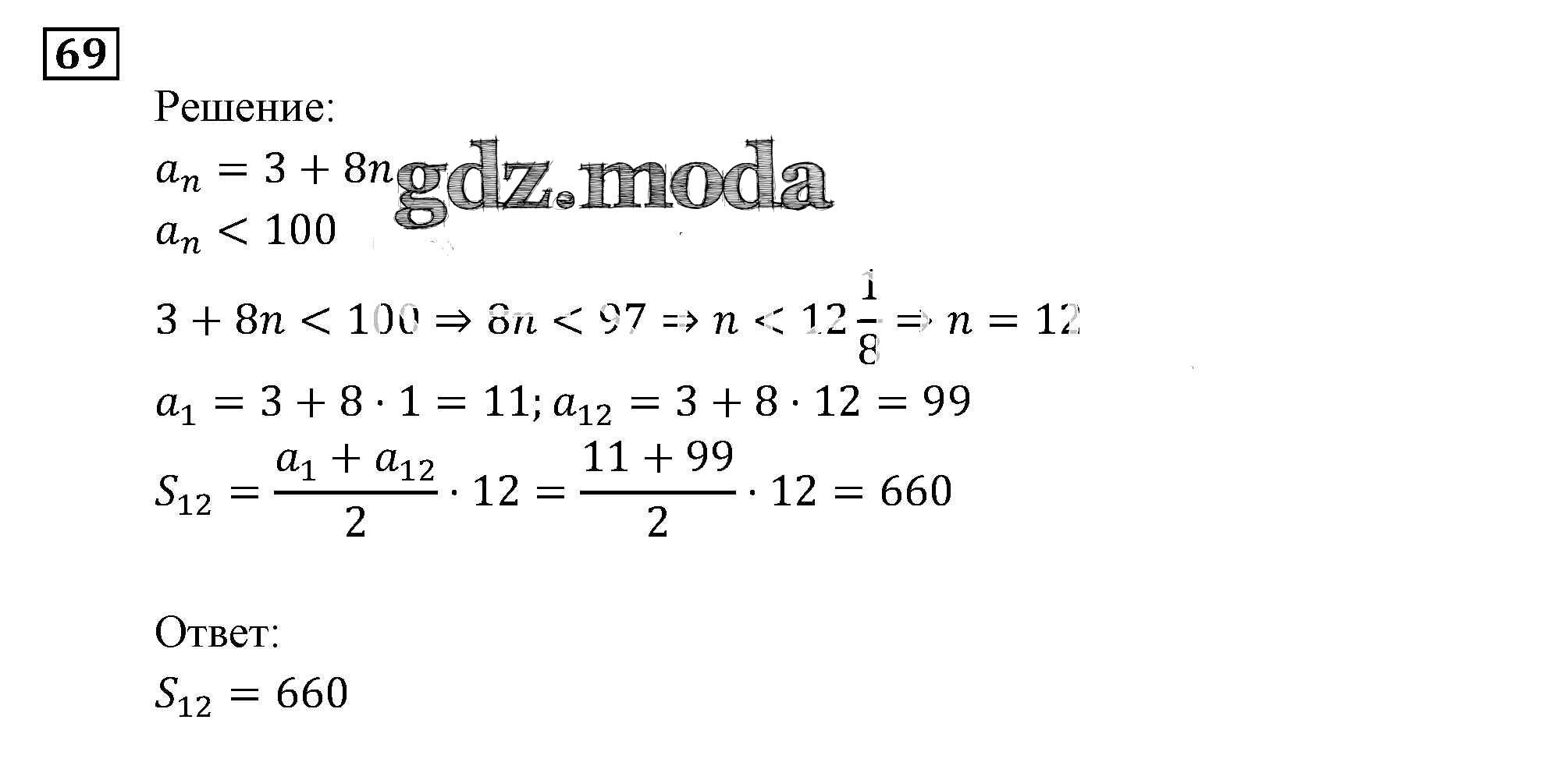 ОТВЕТ на задание № 69 Задачник по Алгебре 9 класс Мордкович