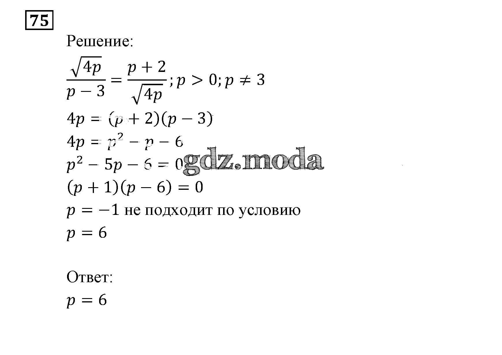 ГДЗ решение к заданию № 75 Алгебра 9 класс Задачник Мордкович А.Г. (часть 2) Мнемозина 2010 Часть 2 ФГОС бесплатно на гдз.мода!