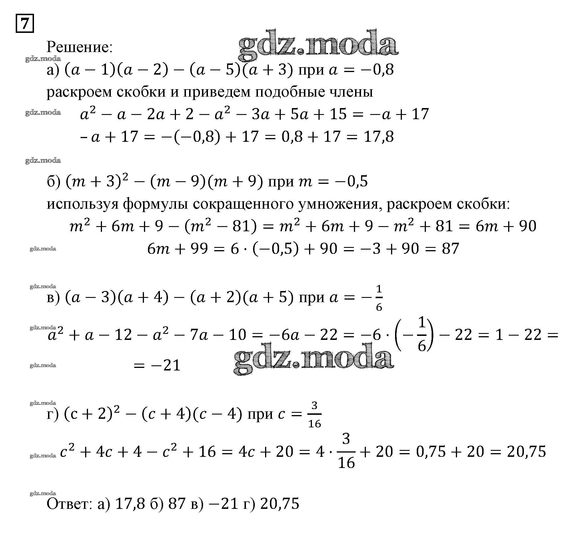 ОТВЕТ на задание № 7 Задачник по Алгебре 9 класс Мордкович