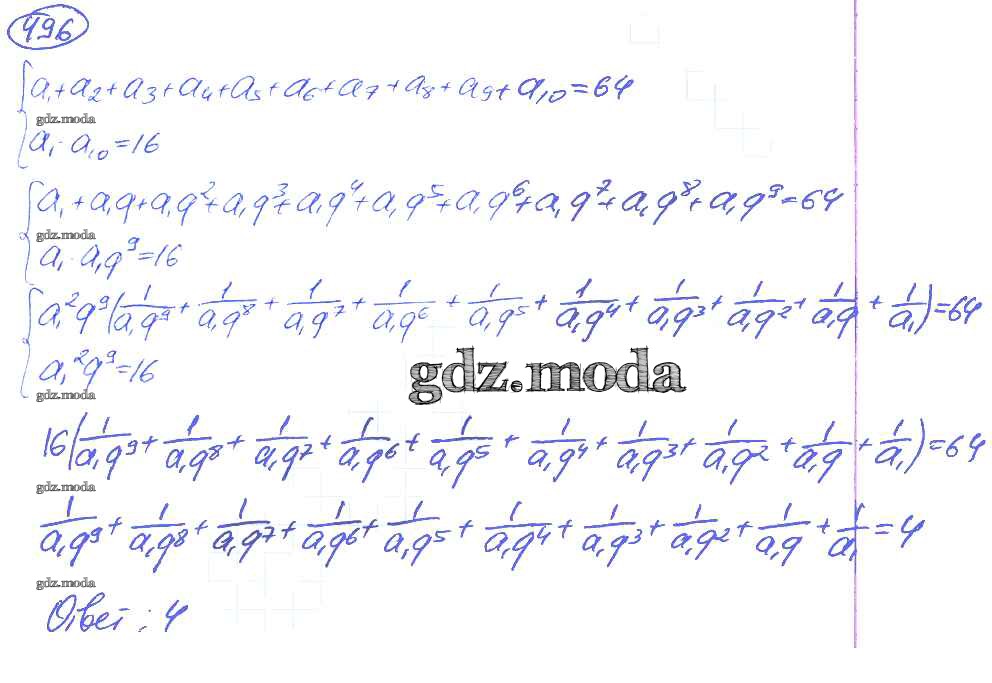 ОТВЕТ на задание № 496 Учебник по Алгебре 9 класс Никольский МГУ - школе