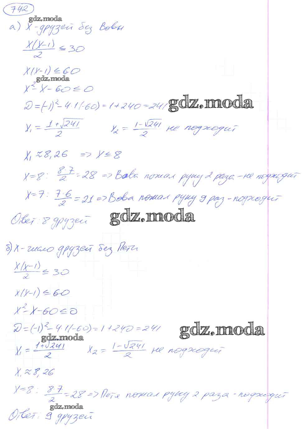 ОТВЕТ на задание № 742 Учебник по Алгебре 9 класс Никольский МГУ - школе