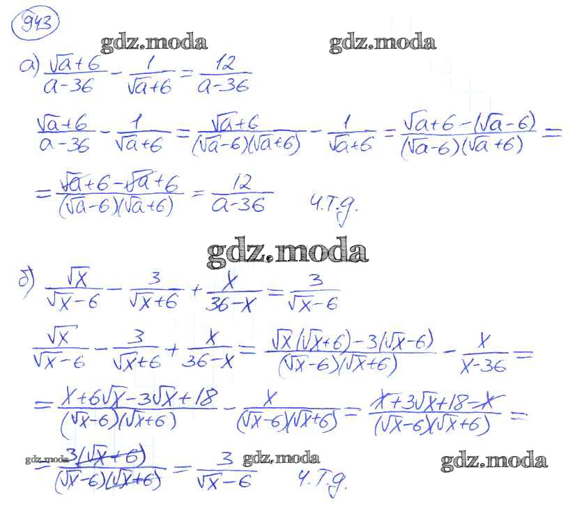 ОТВЕТ на задание № 943 Учебник по Алгебре 9 класс Никольский МГУ - школе