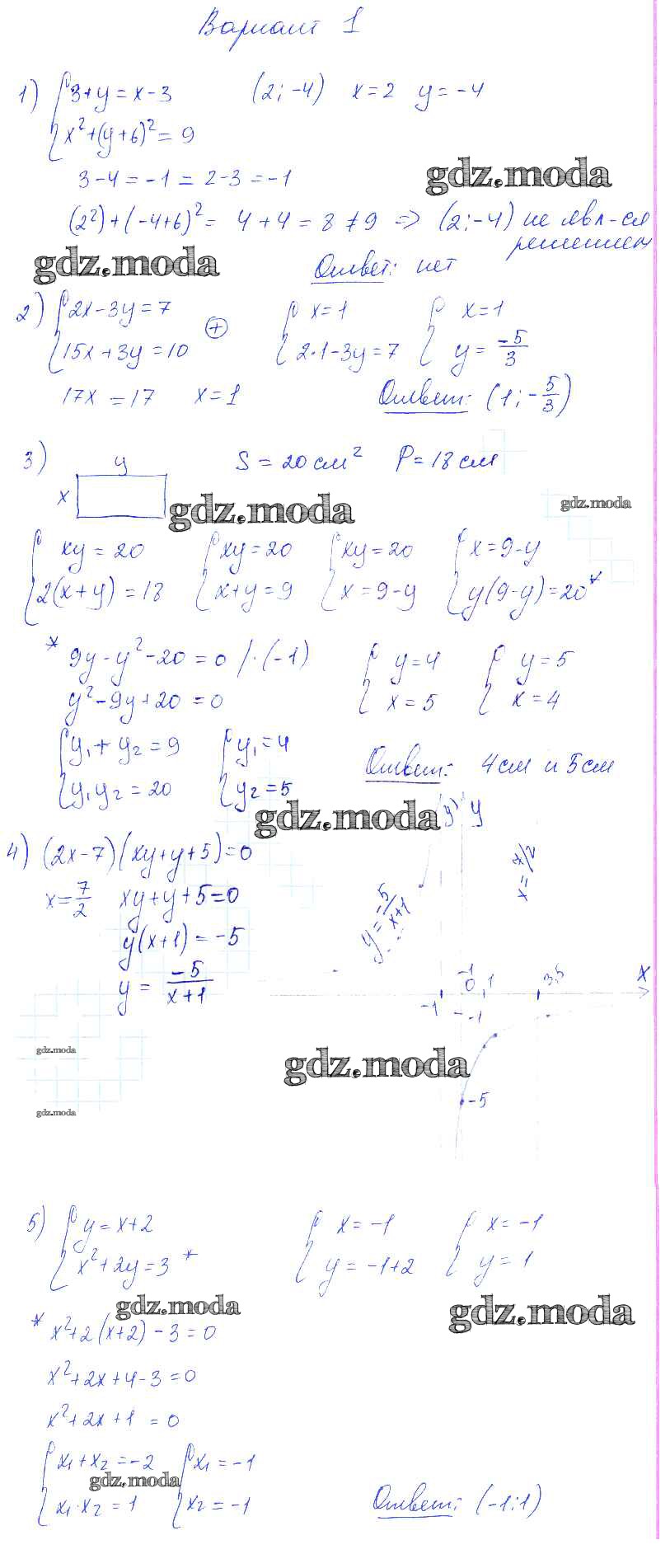 ОТВЕТ на задание № Вариант 1 Контрольные и самостоятельные работы по Алгебре 9 класс Попов УМК