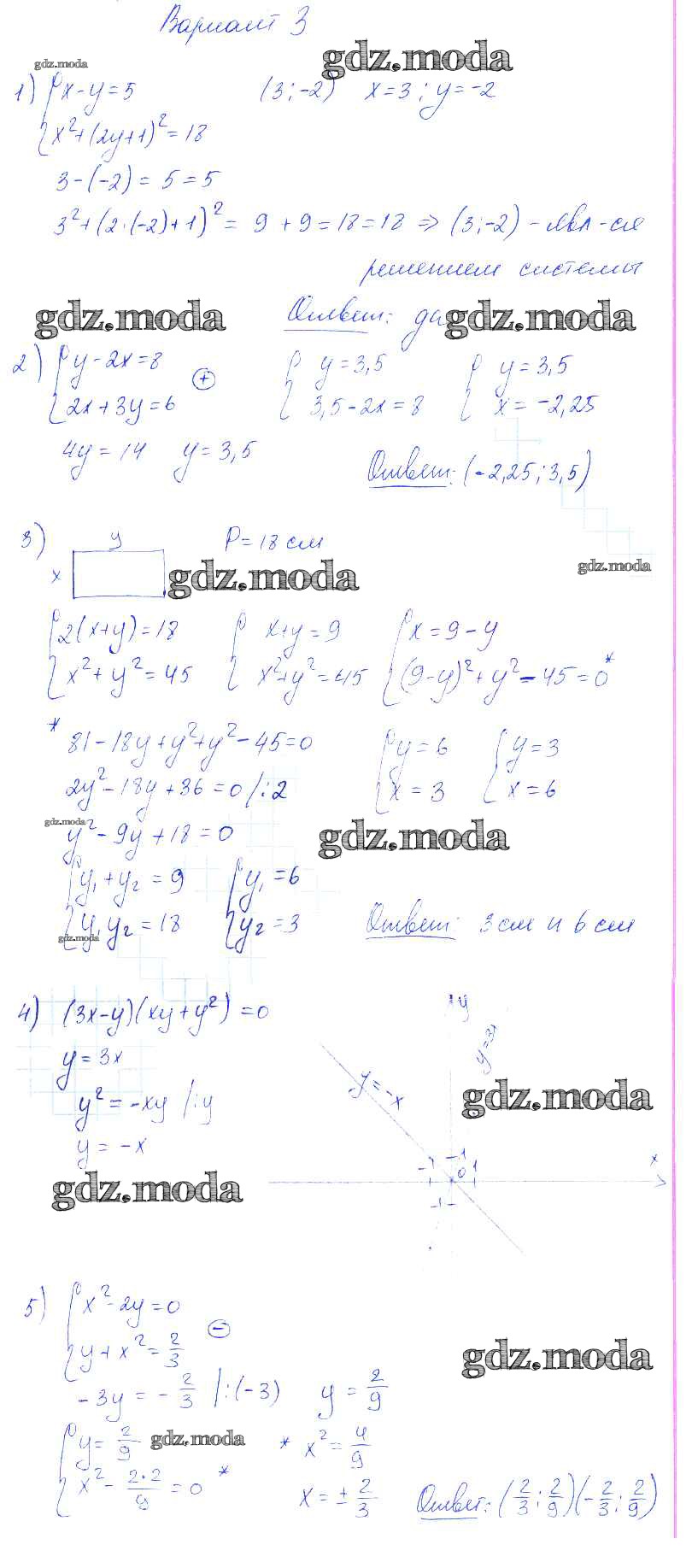 ОТВЕТ на задание № Вариант 3 Контрольные и самостоятельные работы по Алгебре 9 класс Попов УМК