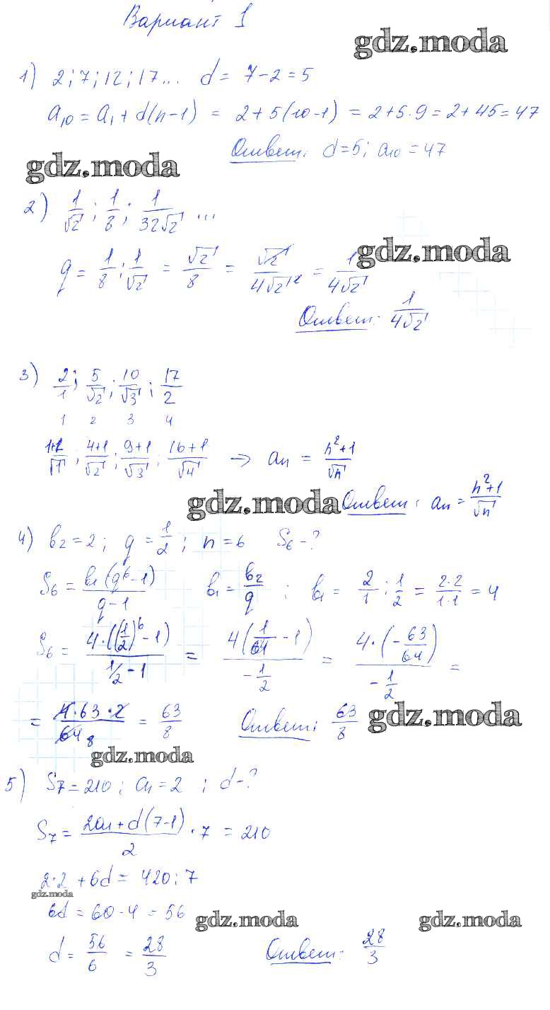 ОТВЕТ на задание № Вариант 1 Контрольные и самостоятельные работы по Алгебре 9 класс Попов УМК