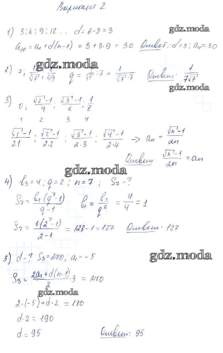 ОТВЕТ на задание № Вариант 2 Контрольные и самостоятельные работы по Алгебре 9 класс Попов УМК