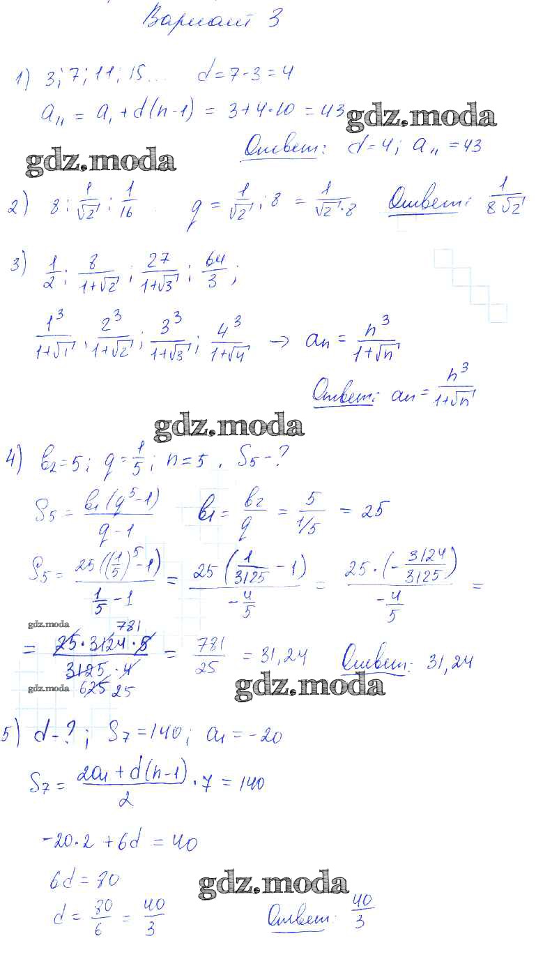 ОТВЕТ на задание № Вариант 3 Контрольные и самостоятельные работы по Алгебре 9 класс Попов УМК