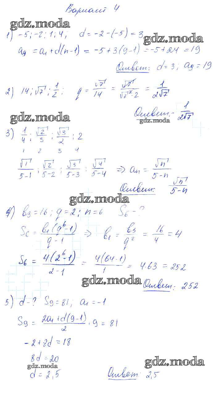 ОТВЕТ на задание № Вариант 4 Контрольные и самостоятельные работы по Алгебре 9 класс Попов УМК