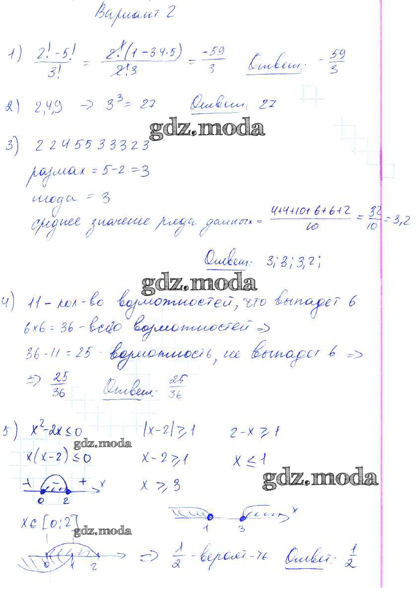 ОТВЕТ на задание № Вариант 2 Контрольные и самостоятельные работы по Алгебре 9 класс Попов УМК