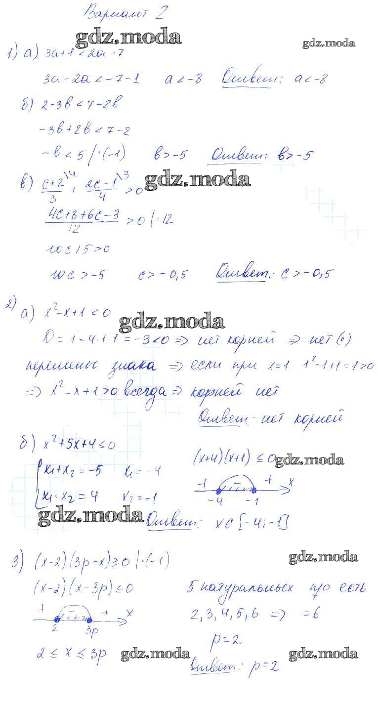 ОТВЕТ на задание № Вариант 2 Контрольные и самостоятельные работы по Алгебре 9 класс Попов УМК