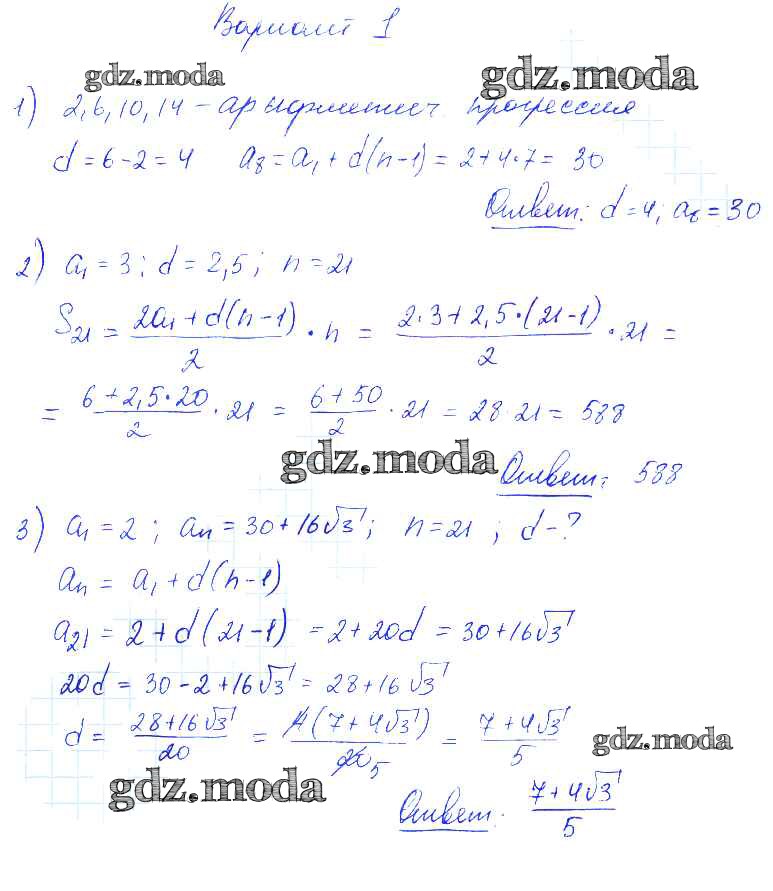 ГДЗ решение к заданию № Вариант 1 Алгебра 9 класс Контрольные и самостоятельные работы Попов М.А. (к уч. Мордковича) Экзамен 2011 ФГОС бесплатно на гдз.мода!