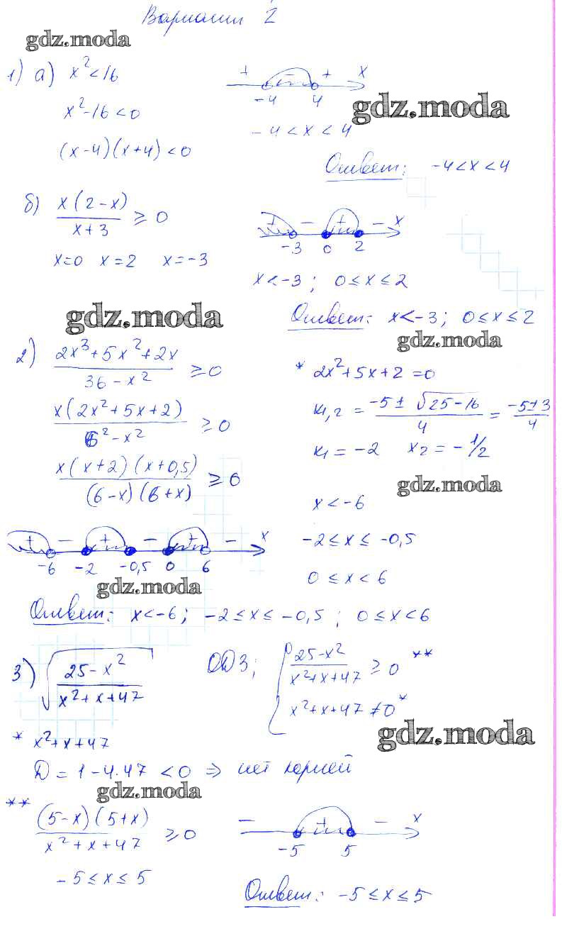 ОТВЕТ на задание № Вариант 2 Контрольные и самостоятельные работы по Алгебре 9 класс Попов УМК