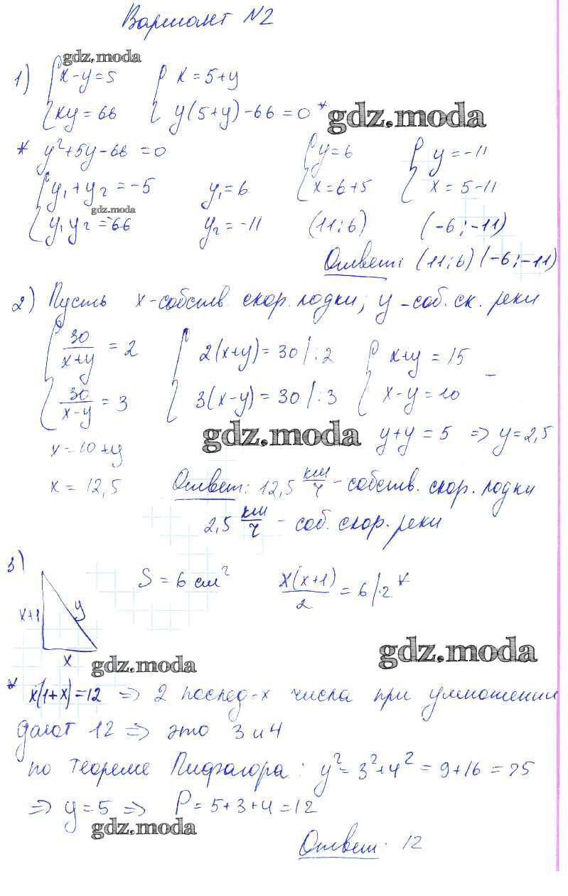 ОТВЕТ на задание № Вариант 2 Контрольные и самостоятельные работы по Алгебре 9 класс Попов УМК