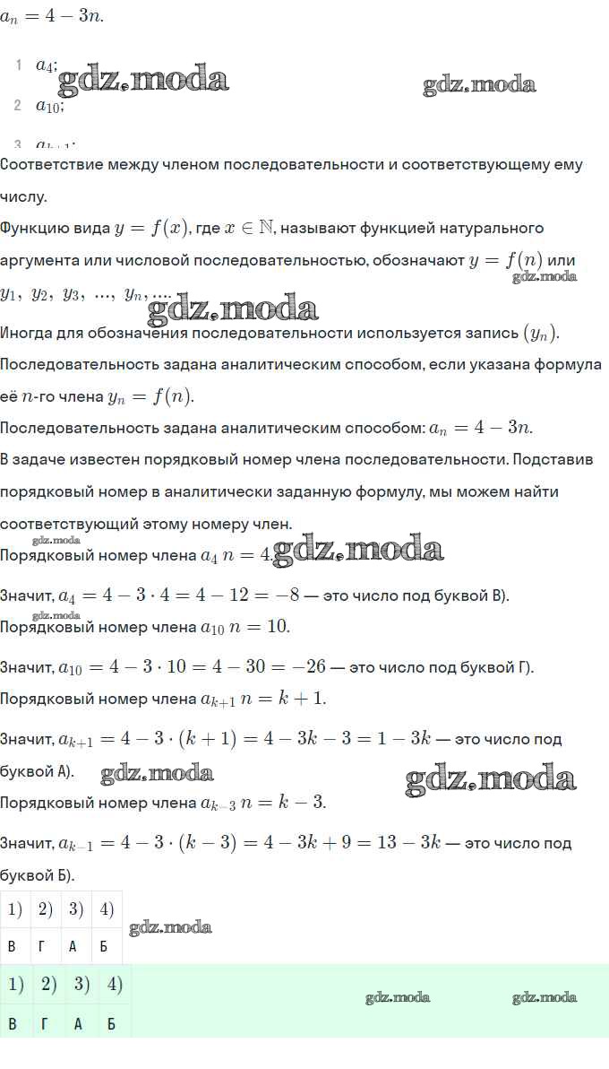 ОТВЕТ на задание № 4 Рабочая тетрадь по Алгебре 9 класс Ключникова УМК