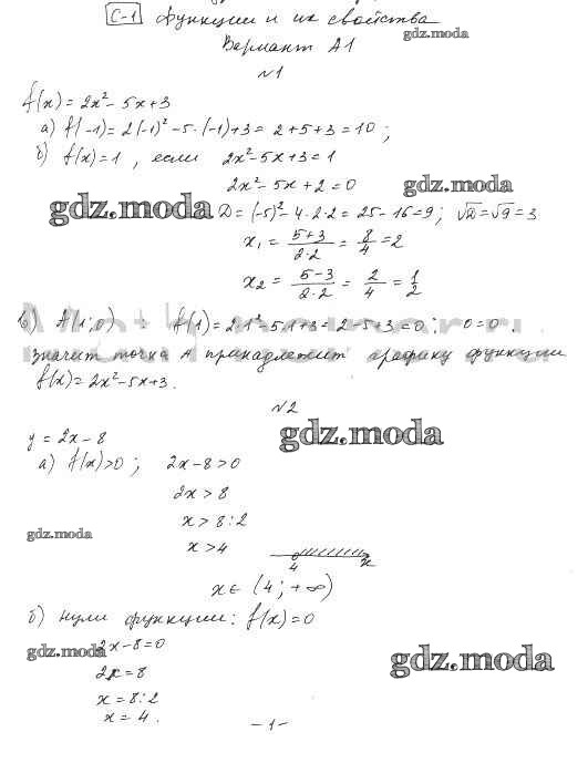 алгебра / самостоятельная работа / ср-1. вариант / А1
