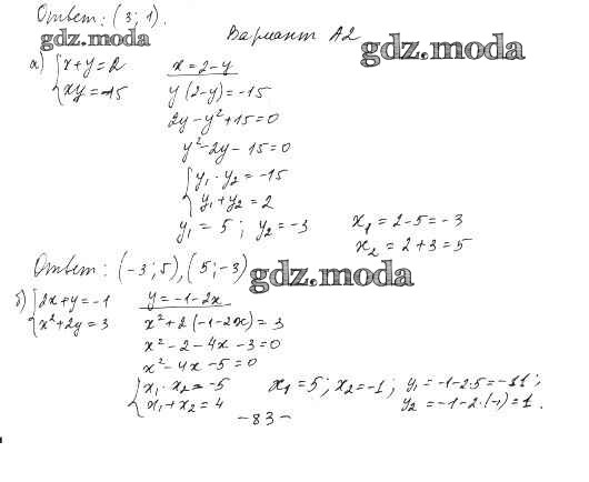 ГДЗ решение к заданию № А2 Алгебра 9 класс самостоятельные и контрольные работы Ершова А.П. Илекса 2015 ФГОС бесплатно на гдз.мода!