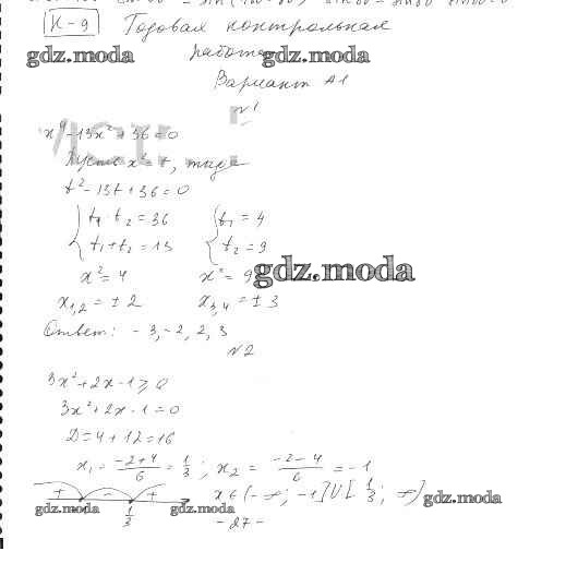 ОТВЕТ на задание № А1 Самостоятельные и контрольные работы по Алгебре 9 класс Ершова