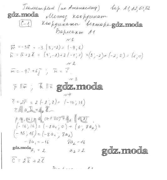 геометрия / к учебнику Атанасяна / самостоятельная работа / ср-1. вариант / А1