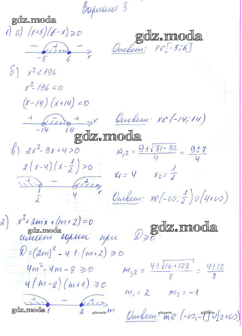 ОТВЕТ на задание № вариант 3 Самостоятельные работы по Алгебре 9 класс Александрова УМК Базовый уровень