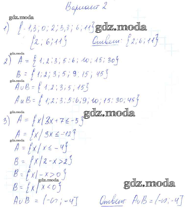 ОТВЕТ на задание № вариант 2 Самостоятельные работы по Алгебре 9 класс Александрова УМК Базовый уровень