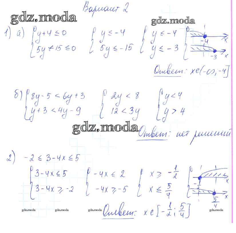 ОТВЕТ на задание № вариант 2 Самостоятельные работы по Алгебре 9 класс Александрова УМК Базовый уровень