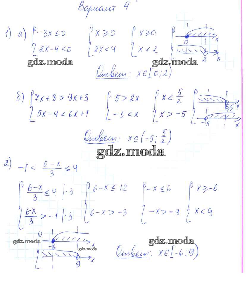 ОТВЕТ на задание № вариант 4 Самостоятельные работы по Алгебре 9 класс Александрова УМК Базовый уровень