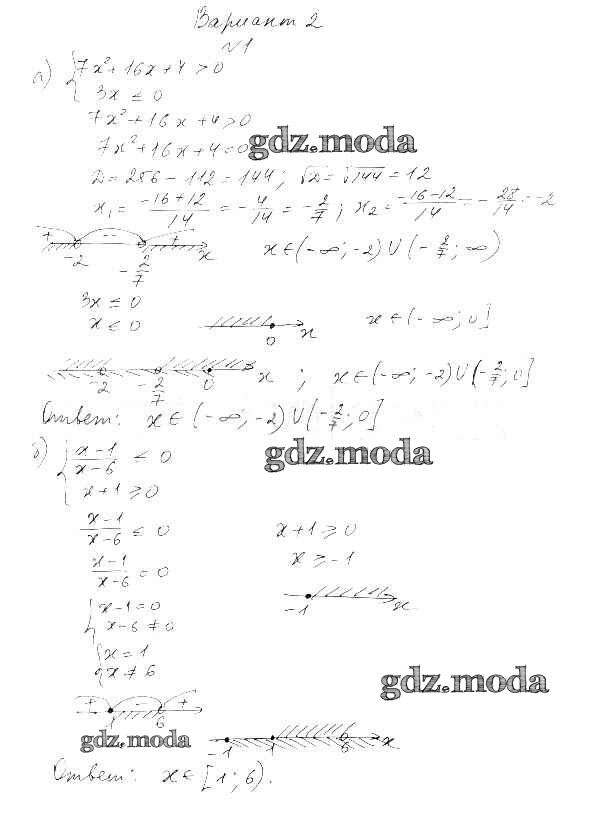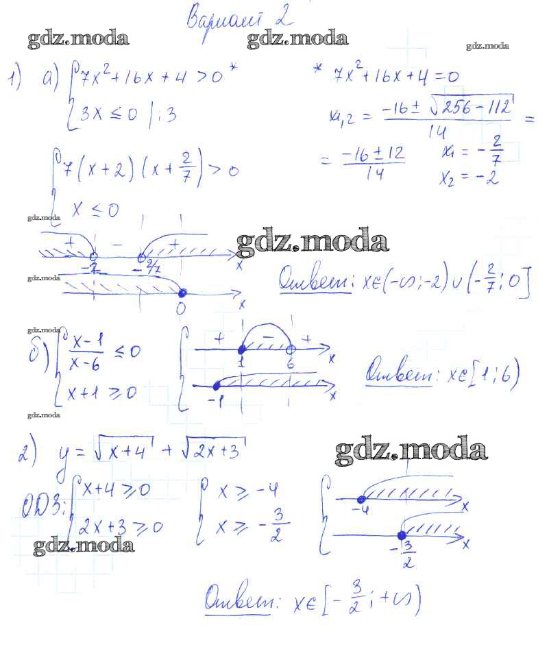 ОТВЕТ на задание № вариант 2 Самостоятельные работы по Алгебре 9 класс Александрова УМК Базовый уровень