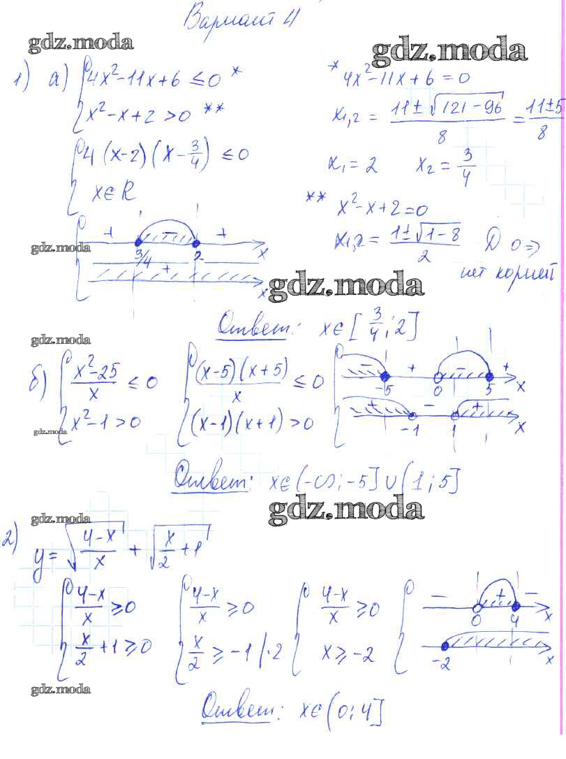 ОТВЕТ на задание № вариант 4 Самостоятельные работы по Алгебре 9 класс Александрова УМК Базовый уровень