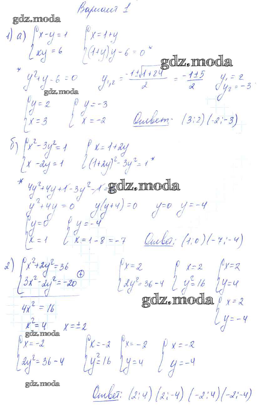 ОТВЕТ на задание № вариант 1 Самостоятельные работы по Алгебре 9 класс Александрова УМК Базовый уровень