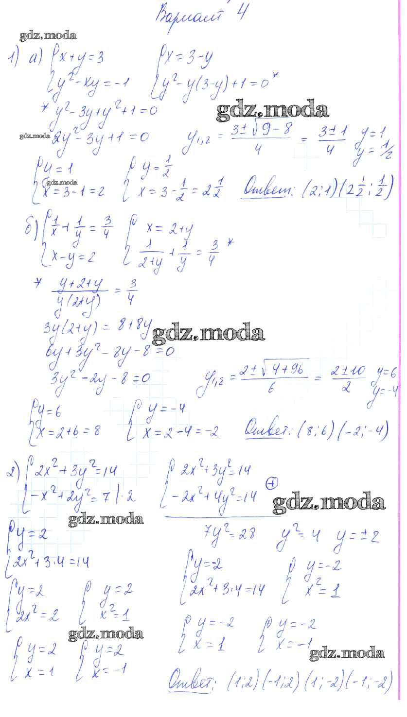 ОТВЕТ на задание № вариант 4 Самостоятельные работы по Алгебре 9 класс Александрова УМК Базовый уровень