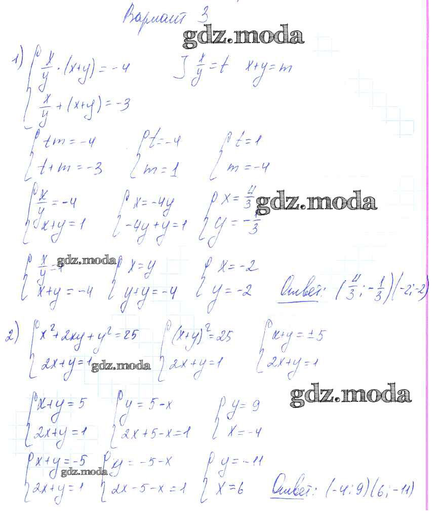 ОТВЕТ на задание № вариант 3 Самостоятельные работы по Алгебре 9 класс Александрова УМК Базовый уровень