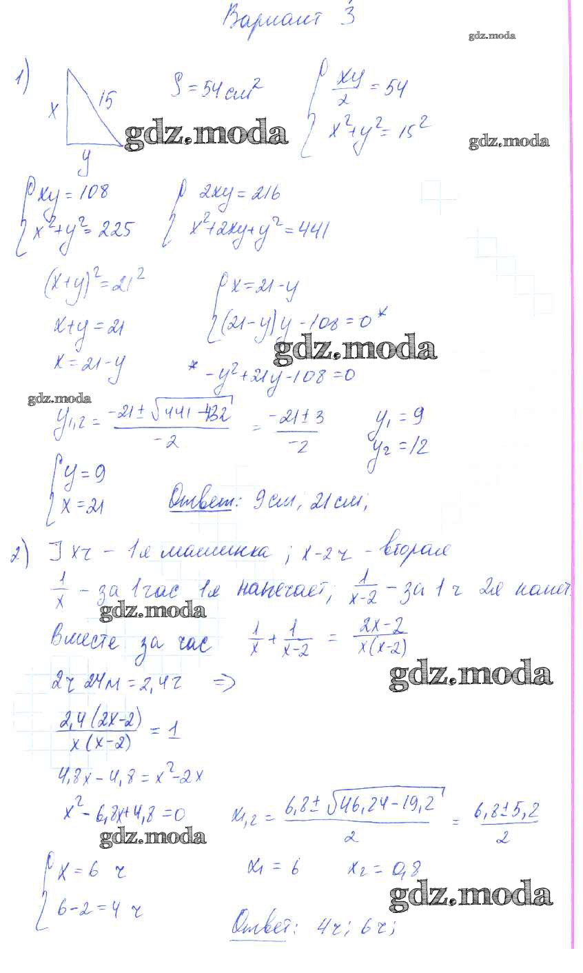 ОТВЕТ на задание № вариант 3 Самостоятельные работы по Алгебре 9 класс Александрова УМК Базовый уровень