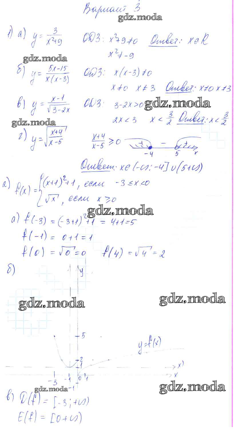 ОТВЕТ на задание № вариант 3 Самостоятельные работы по Алгебре 9 класс Александрова УМК Базовый уровень