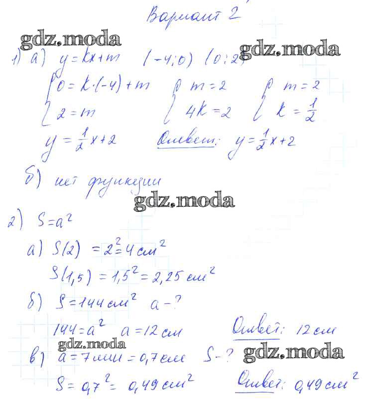 ОТВЕТ на задание № вариант 2 Самостоятельные работы по Алгебре 9 класс Александрова УМК Базовый уровень