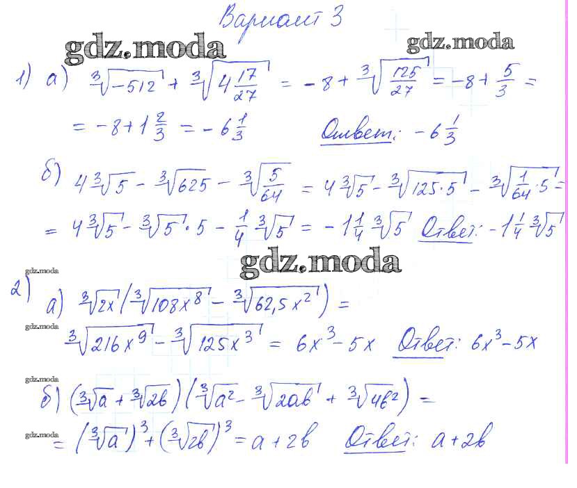 ОТВЕТ на задание № вариант 3 Самостоятельные работы по Алгебре 9 класс Александрова УМК Базовый уровень