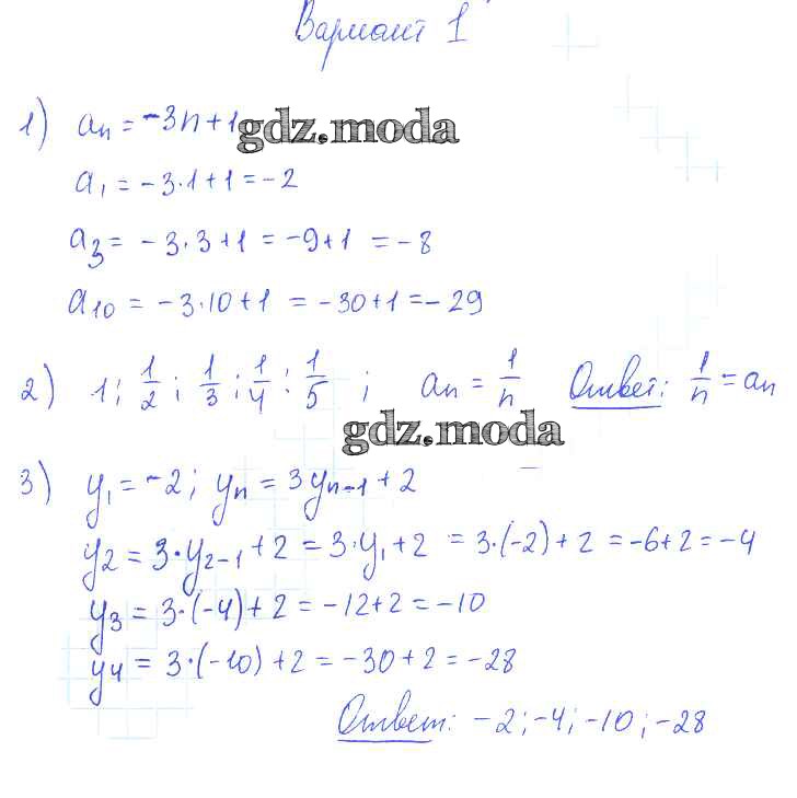 ОТВЕТ на задание № вариант 1 Самостоятельные работы по Алгебре 9 класс Александрова УМК Базовый уровень
