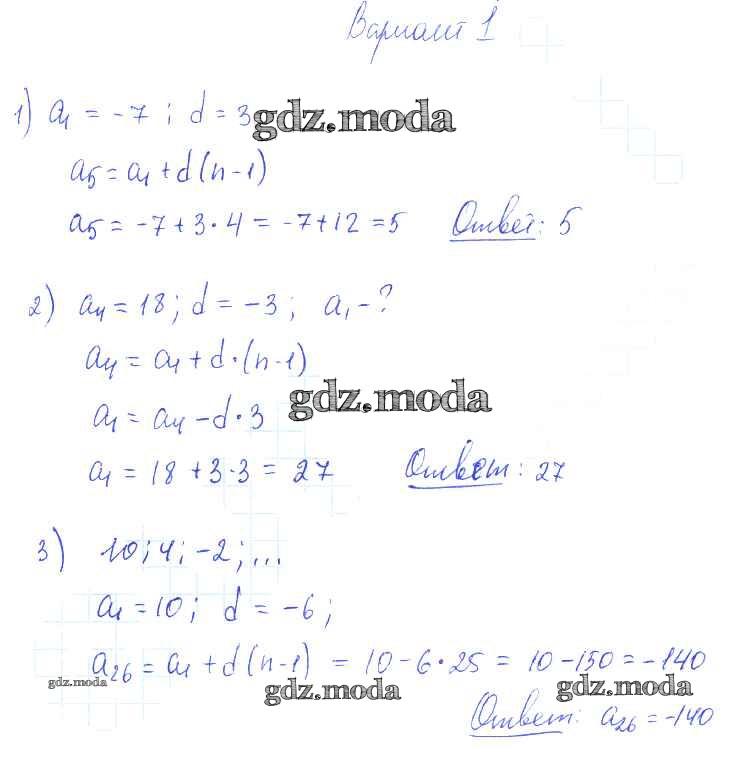 ОТВЕТ на задание № вариант 1 Самостоятельные работы по Алгебре 9 класс Александрова УМК Базовый уровень