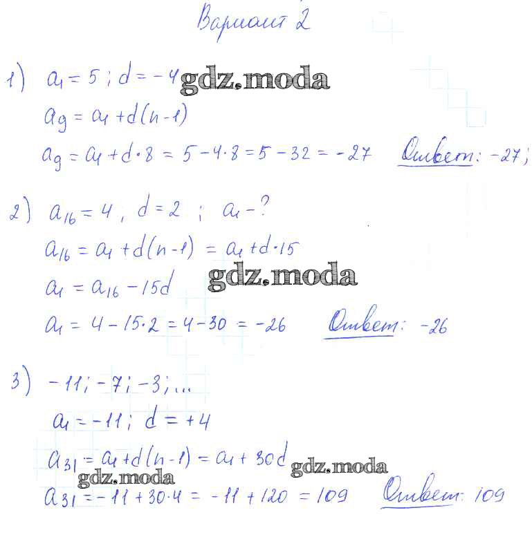ОТВЕТ на задание № вариант 2 Самостоятельные работы по Алгебре 9 класс Александрова УМК Базовый уровень