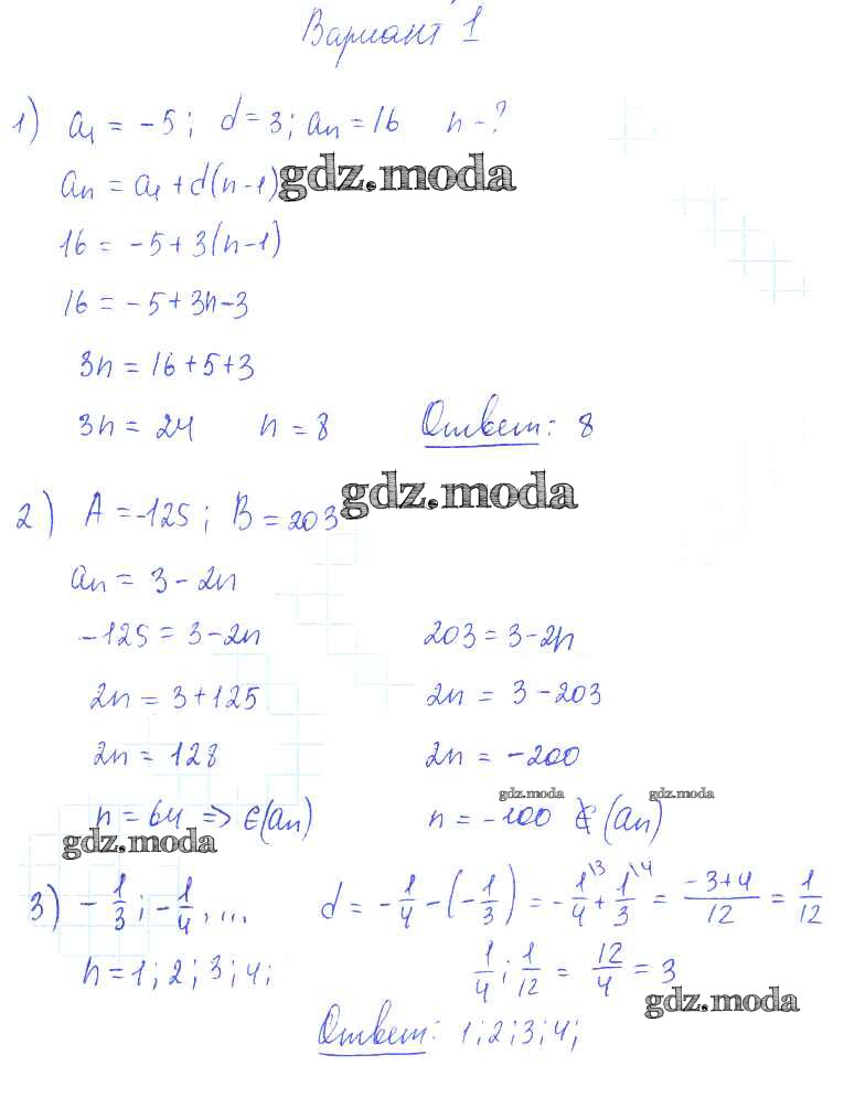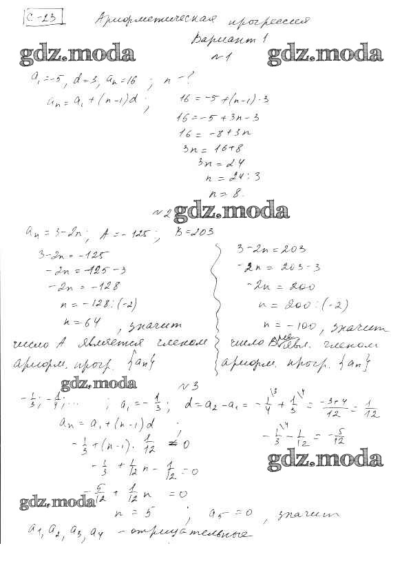 ОТВЕТ на задание № вариант 1 Самостоятельные работы по Алгебре 9 класс Александрова УМК Базовый уровень