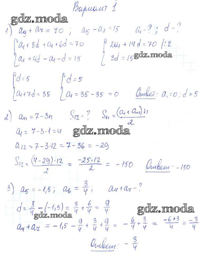 ОТВЕТ на задание № вариант 1 Самостоятельные работы по Алгебре 9 класс Александрова УМК Базовый уровень