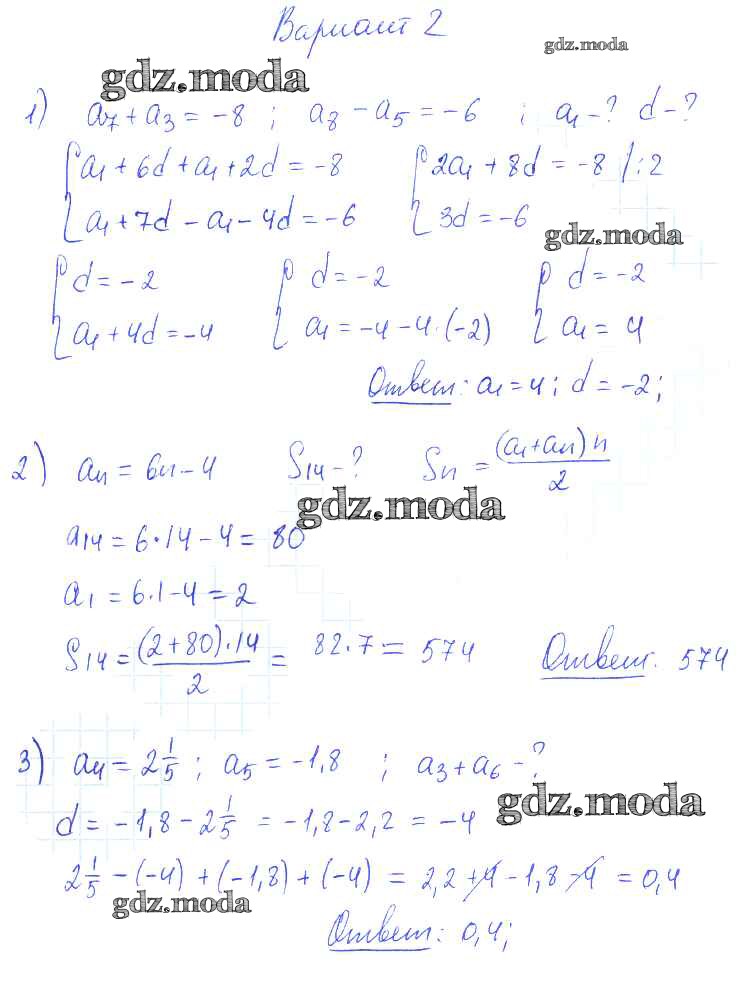 ОТВЕТ на задание № вариант 2 Самостоятельные работы по Алгебре 9 класс Александрова УМК Базовый уровень