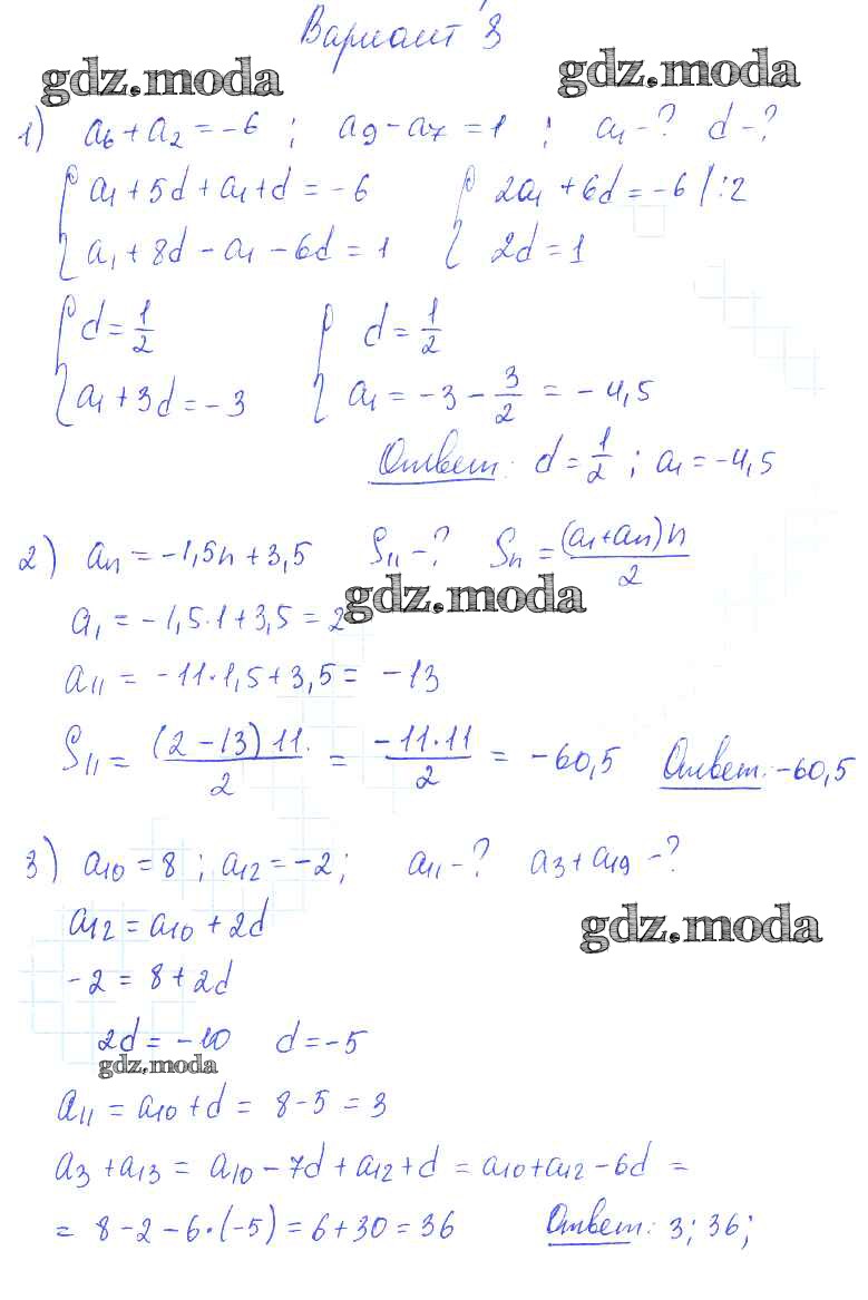 ОТВЕТ на задание № вариант 3 Самостоятельные работы по Алгебре 9 класс Александрова УМК Базовый уровень
